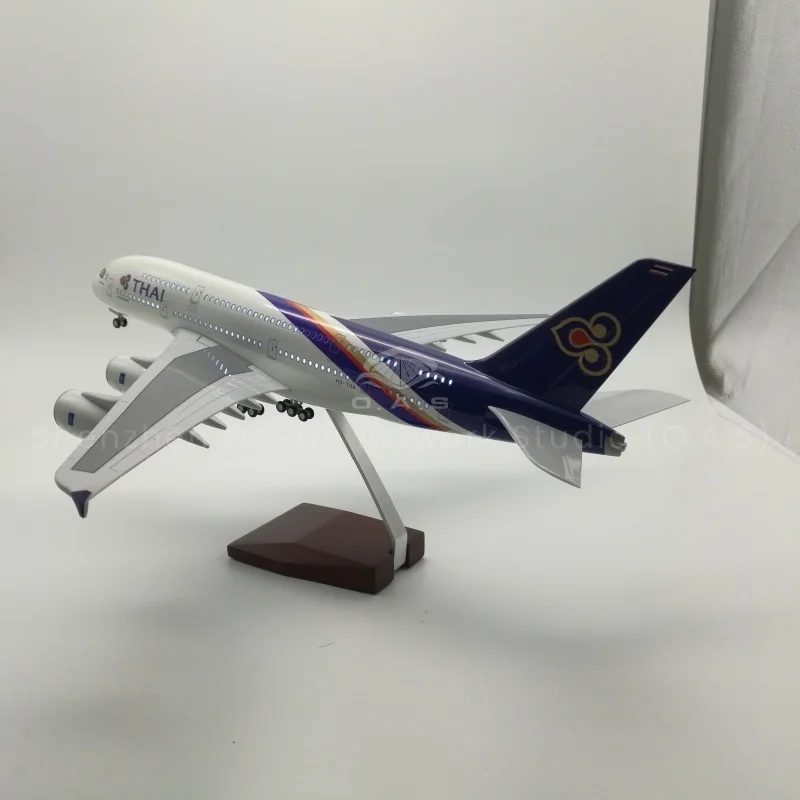 【LA】LED ABS Resin Airplane Model Airbus 380 Thai Airways Size 46cm Scale 1/160 with LED Light and Landing Gear